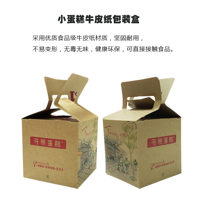 小蛋糕牛皮紙包裝盒采用優(yōu)質(zhì)食品級牛皮紙材質(zhì),堅(jiān)固耐用,不易變形,無毒無味,健康環(huán)保,可直接接觸食品,方便將食物打包外帶,給我們的生活帶來了極大的便利。
